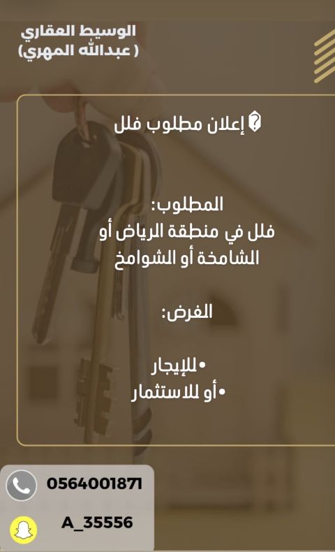 تسويق عقارك معنا مجانا بدون رسوم خبرة كبيرة في ادارة العقارات حصري لدينا للسادة الملاك والمستثمرين نحن شركة ادارة عقارات مطلوب من الملاك والمستثمرين للإيجار أو البيع فلل وبنايات وشقق ومجمعات سكنيه وأراضي وسرعة في تنفيذ - تواصل معنا في أمان وثقة وفي خدمتك
