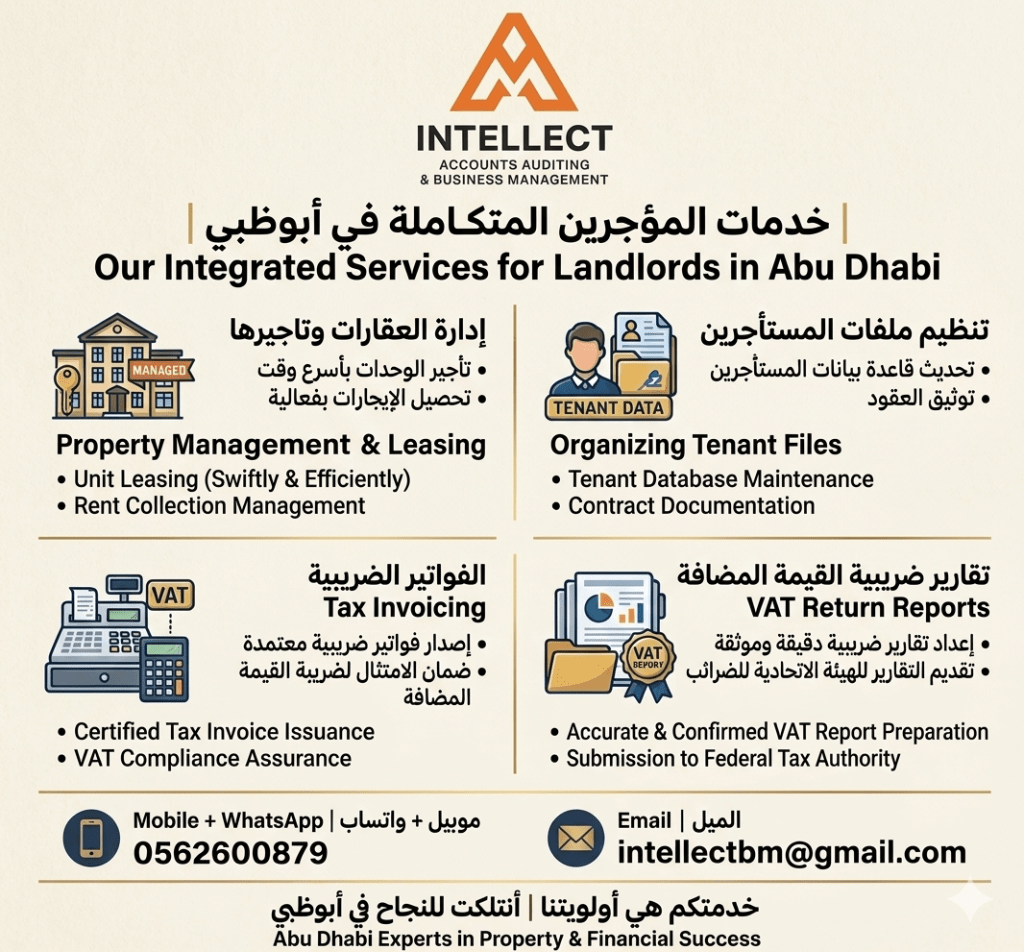 The Comprehensive & Trusted Solution for Landlords in Abu Dhabi Do you own properties in Abu Dhabi and seek peace of mind At "Intellect, we provide a suite of integrated services specifically designed to meet your needs as a landlord, enabling you to maximize your returns without the hassle of daily management. Our Integrated Services Include Property Management & Leasing Marketing and leasing