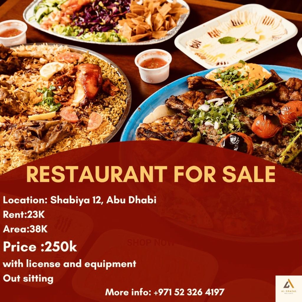 Restaurant for sale Location Shabiya 12, Abu Dhabi rent 23000 Area 38000 Price 250000 with license and equipment Out sitting Contact us for more details