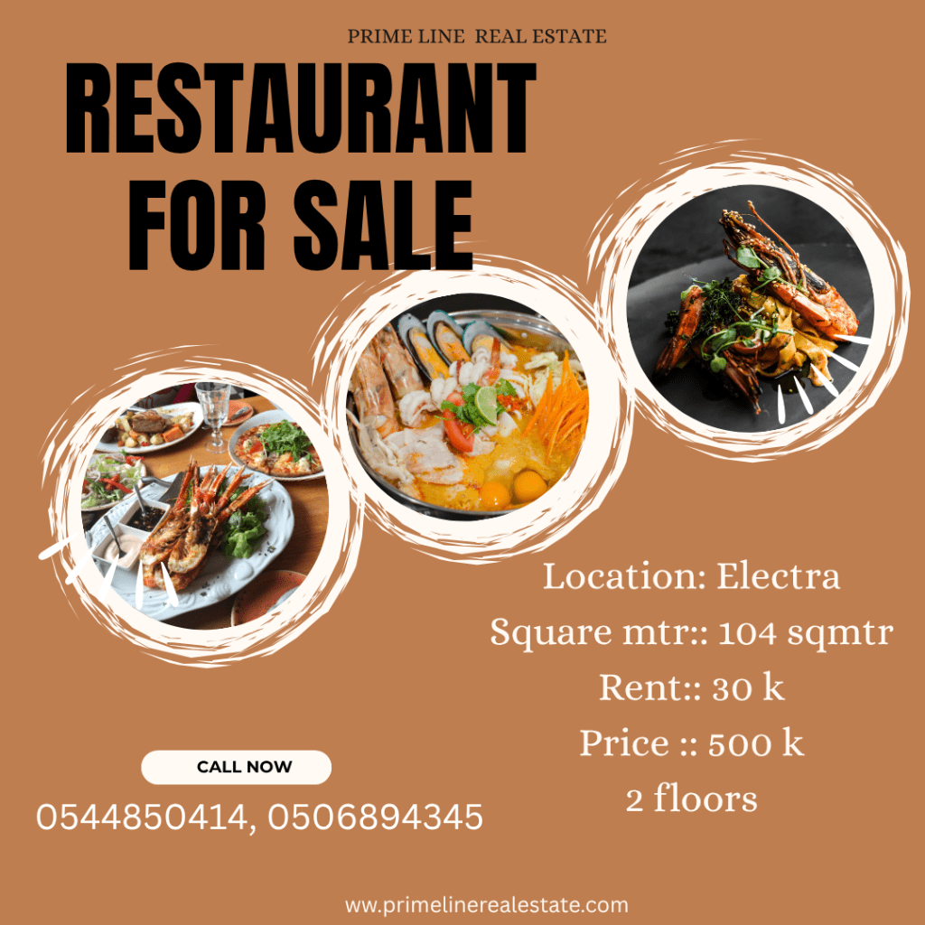 Restaurant for sale SQM 104 rent 30000 Price 500000 ELECTRA