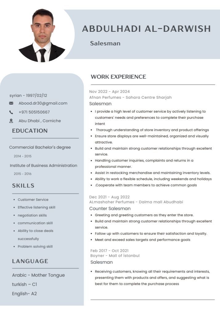 خبرة في مجال المبيعات تسويق خبرة تزيد 4 سنوات في المجال القدرة على التصميم والمتابعة