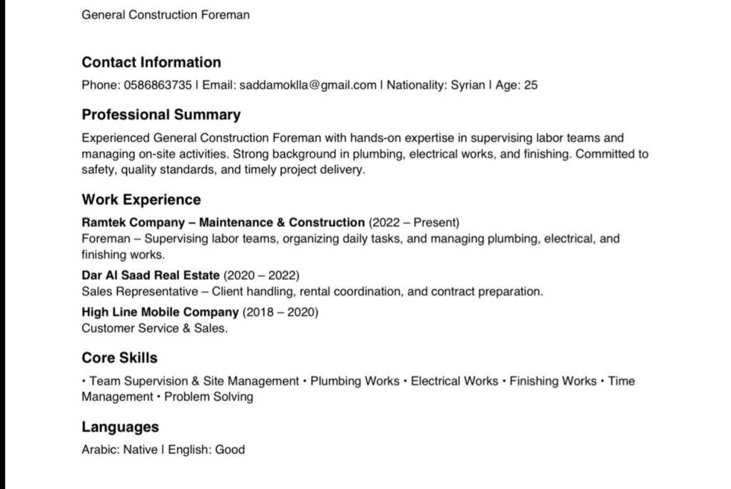 الجنسية سوري العمر 25 عام أحمل ليسن يوجد CV يرجى الطلاع عليه