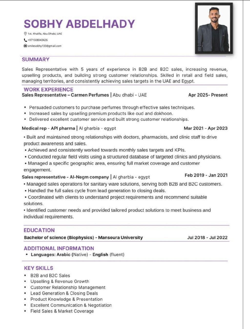 I am writing to apply for the Sales position at your company. I have strong communication skills and the ability to build good relationships with customers. I am confident in my ability to achieve sales targets and contribute to the success of your team. Please find my CV attached. Thank you for your time. Best regards, Name sobhy abdelhady