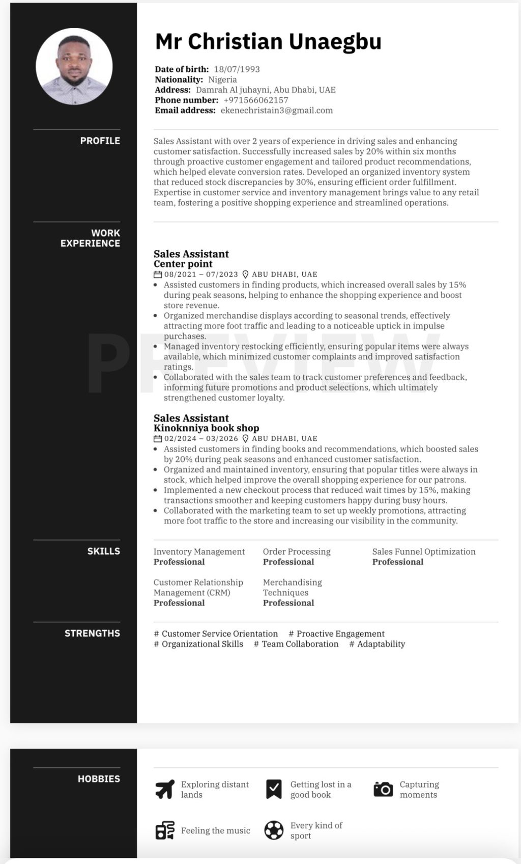 Sales Assistant job seeking in Abu Dhabi