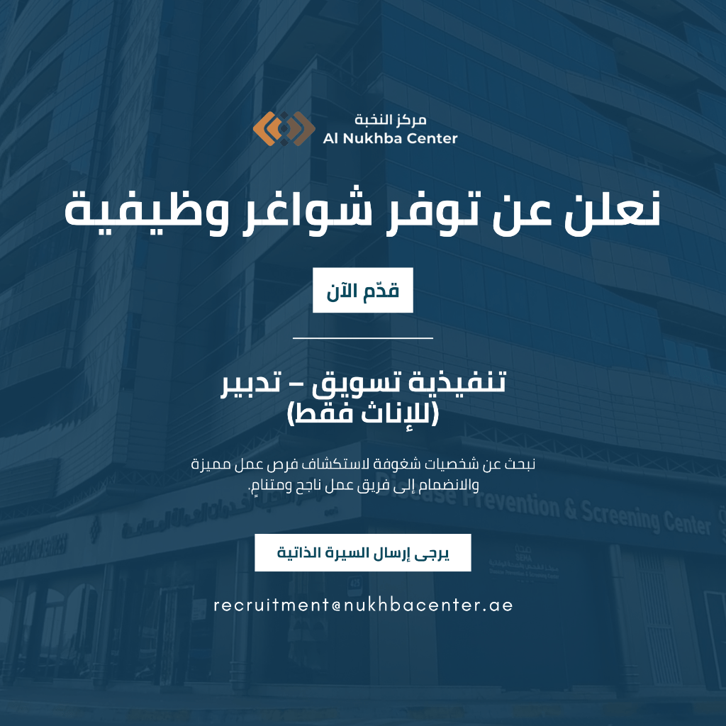 تنفيذية تسويق - تدبير (أبوظبي) الخالدية انضمي الى فريقنا المتنامي وكوني جزءا من نجاحنا المستمر المهام الوظيفية الترويج لخدمات وباقات مركز تدبير استقبال استفسارات العملاء وتحويلها الى فرص بيع تنسيق وإجراء المقابلات بين العملاء والعاملات المنزليات التعامل مع شكاوى العملاء ومتابعتها باحترافية توضيح مميزات وعيوب العاملات المنزليات للعملاء التنسيق مع الأقسام الداخلية واعداد التقارير الدورية المتطلبات للاناث