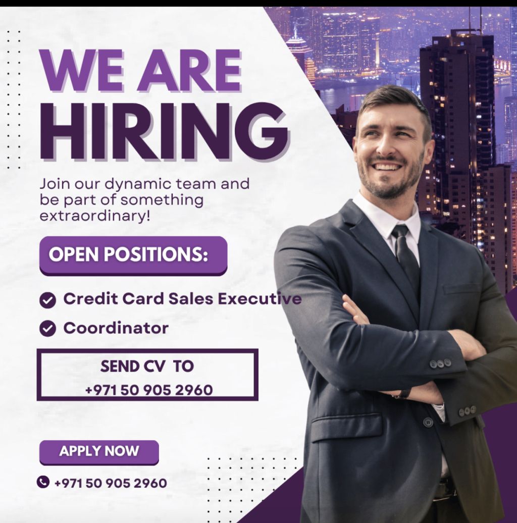 We are hiring credit card sales staff for one of our dynamic banking in Khaldiya area Abu Dhabi At least 6 months bank experience required (freshers also welcome) send your CV what’s up