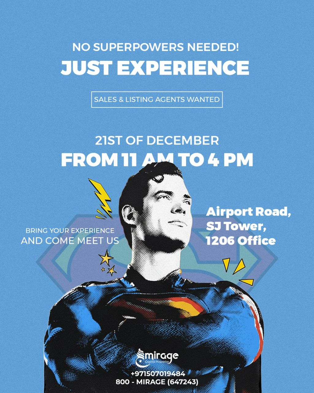 تتقدم شركة ميراج العقاريه أبوظبي المكان شارع المطار اعلان عن يوم مفتوح للتوظيف مجالات sales and listing