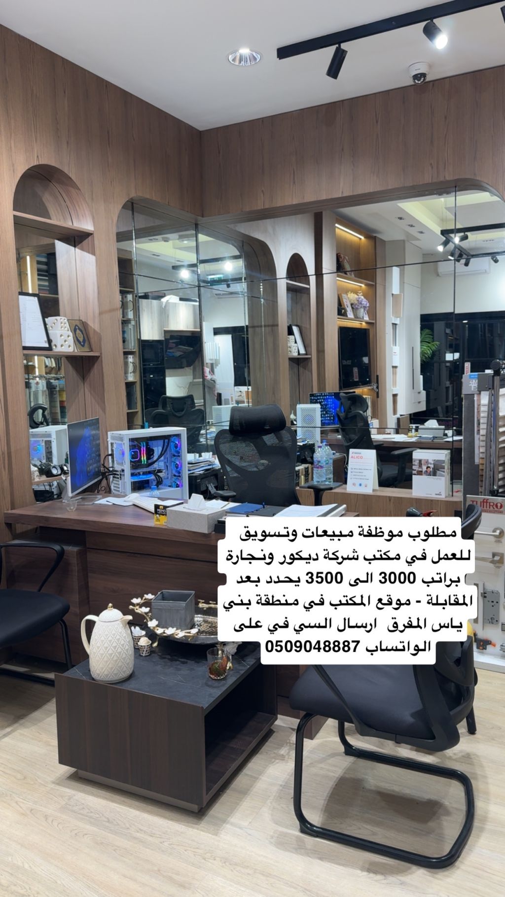 مطلوب موظفة مبيعات وتسويق في مكتب شركة ديكور وتصاميم ونجارة مكان المكتب في منطقة بني ياس - المفرق ويحدد الراتب بعد المقابلة وحسب الخبرة