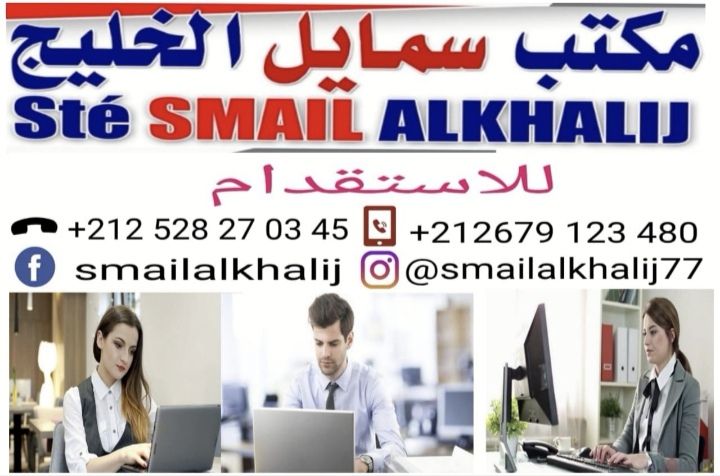 نحن شركة سمايل الخليج للتوظيف بدول الخليج نوفر لكم من المغرب سكرتيرات وسكرتير تنفيذي / محاسبات ومحاسبين / موظفات خدمة العملاء / موظفات علاقات عامة / كذلك نوفر مسوقات ميداني ومندوبات مبيعات / جميع الموظفين والموظفات يتميزون بمهارات عالية / للطلب أو الاستفسار يرجى التواصل معنا عبر أرقامنا