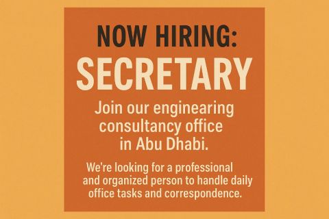 Now Hiring Secretary Join our engineering consultancy office in Abu Dhabi