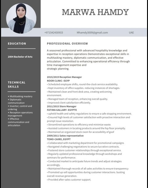 سيدة عربية تبحث عن عمل، لديها خبرة في المبيعات، والتجزئة، والاستقبال، الخ. حاصلة على بكالوريوس في الآداب، ولديها تأشيرة إقامة خاصة بها على زوجها