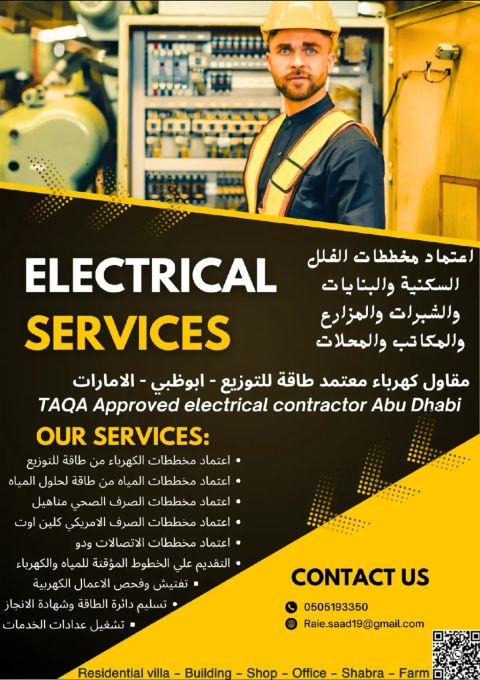 مهندس كهرباء لاعتماد ورسم وتصميم مخططات الكهرباء والماي والصرف الصحي والكلين أوت والاتصالات في أبوظبي والعين للفلل السكنية والشبرات والبنايات والمحلات التجارية