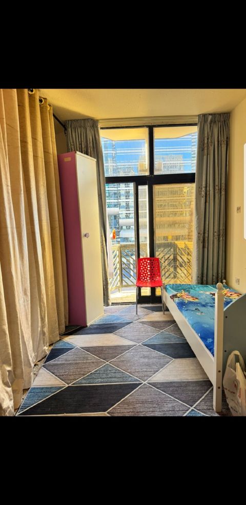 غرفة بارتشن للبنات مفروشة مع بلكونه بسعر 1200 درهم بتشوف البحر في برج مركزي للإيجار مقابل فندق سوفوتيل في واي فاي شارع خليفة