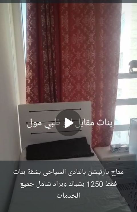 متاح بارتشن في النادي السياحي بشقة بنات فقط بسعر 1250 درهم بشباك وبراد شامل جميع الخدمات