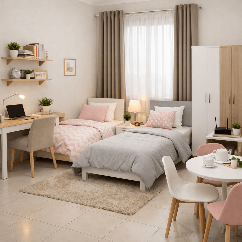 Shared accommodation for ladies (bed space for rent) in Falah Al Jadeeda. Clean and organized room within a quiet apartment, suitable for students and working women. Bed available in a shared room with internet and full services. Located near Lulu Market Falah and all essential facilities. Ideal for those seeking a calm and respectful environment