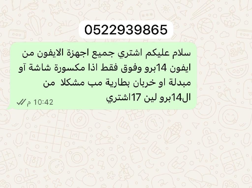 أشتري جميع الآيفونات من صدار 14 برو وفوق اذا خربان شاشة أو بطارية أو مبدل فيه شيء مب مشكلا أشتري في أسعار مناسبة