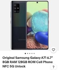 Samsung Galaxy A71 8GB Ram 128 GB Space Blue Used in good condition for exchange with Samsung tablet