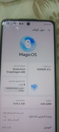 هاتف هونر x7c نسخة الشرق الأوسط استعمال شهر فقط للبيع بي 500 درهم ذاكرة 256 رام 8 قيقا