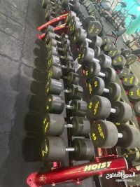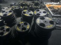 Dumbbell weights and plates 10 dirhams per kilo, and there is also a set available