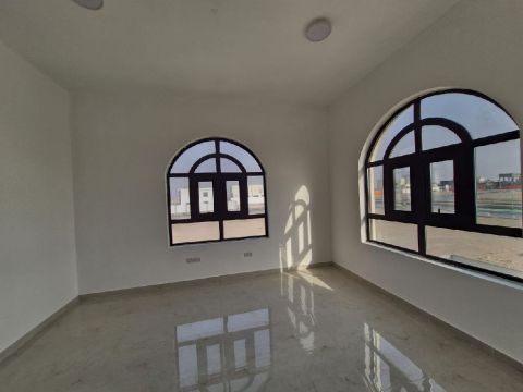 Big 1 Bedroom Hall New Villa with Roof Big Balcony 2nd floor opposite free water and electric Al Wahdah Mall family environment big room big hall separate kitchen and big bathroom with bath tub close to market and bus stop ready to move payment monthly contract 1 year cheque require rent 6000/ office fees 500/ commission 5% for more information call me day time