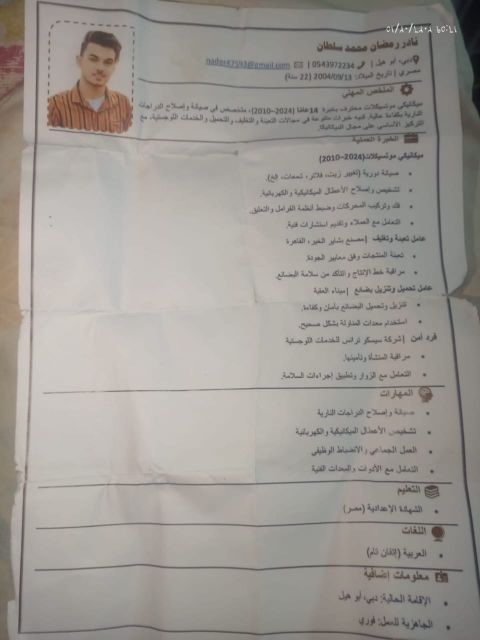 أنا محمد عبد الرحمن الحليبي، فني صيانة عامة بخبرة تتجاوز 6 سنوات في الامارات وسوريا (ألومينيوم، زجاج، خشب، وصيانة منازل وفلل) وأحمل رخصة قيادة اماراتية سارية. أتقدم بطلب الانضمام الى فريقكم الكريم. ويسعدني تحديد موعد للمقابلة في الوقت المناسب لكم، محمد عبد الرحمن الحليبي. رقم