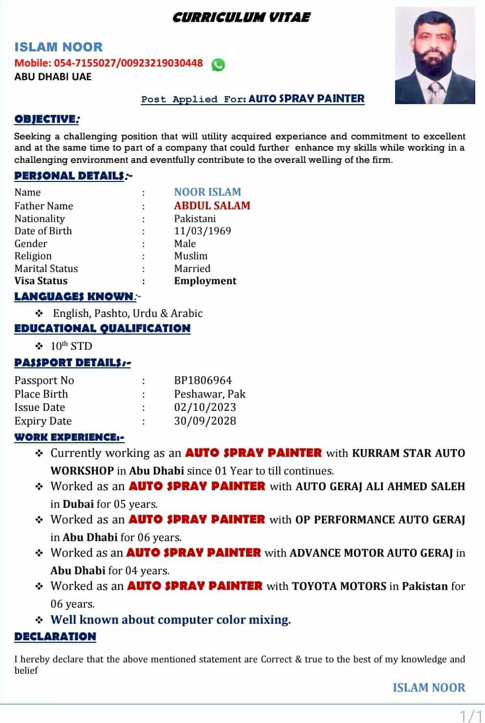 I am Looking FOR A Job ATUO CAR PENRER Abu Dhabi MUSSFAH. 15 YEYAR UAE experience AND Pakistani 6. Year IN Pakistani Toyota IM GOOD PAINER AND IM MAKE Machine PAINTING I CAN IT DO IT WITH COMPUTERS MAKE AND CAR POLISHING I CAN MAKE IM