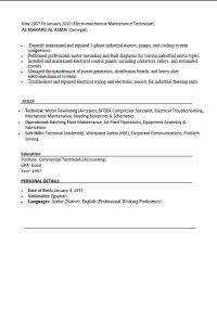 Experienced Electromechanical Technician Seeking Job Opportunity Highly skilled Electromechanical Technician with over 21 years of experience in Industrial maintenance, motor rewinding, and mechanical/ electrical repairs. Strong experience in Ready - Mix Concrete Batching Plants Cement Factories Ice Plants Maintenance of generators and all types of motors Specialist in BITZER compressors