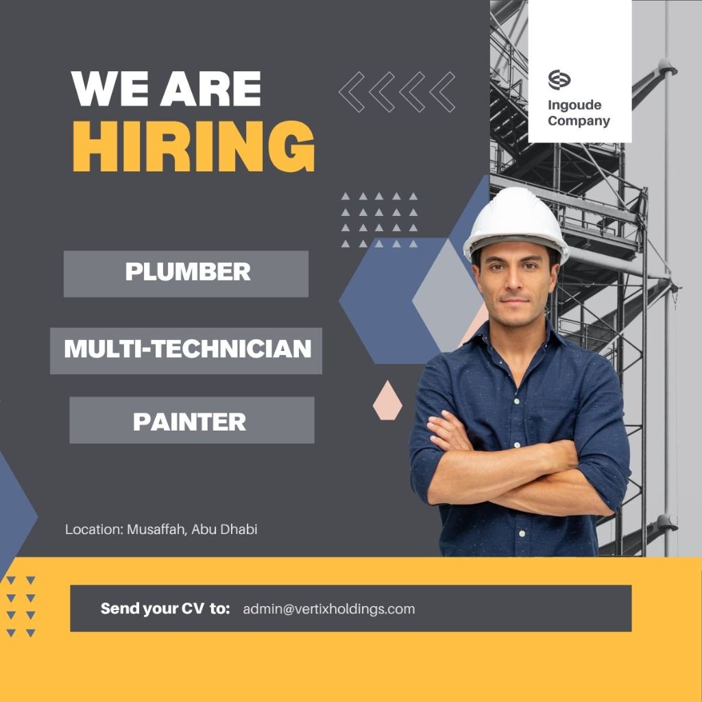 We are hiring for the following positions to join our team in Mussafah, Abu Dhabi. Plumber - Multi - Technician - Painter Company will provide visa and insurance. If interested, kindly share your CV to