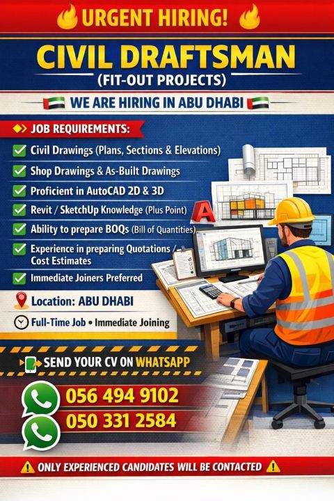 ELV/ CCTV Technician with 3 + yrs experience. excellent knowledge in all ELV system installation, repair & maintenance. Must know CCTV installation and configuration, access Control, attendance system, Gate barriers, alarm system, magnetic lock, networking, cabling, piping and drilling. Valid UAE Driving license is mandatory. Salary from AED2000 + accommodation. Job Location - Mussafah, Abu Dhabi