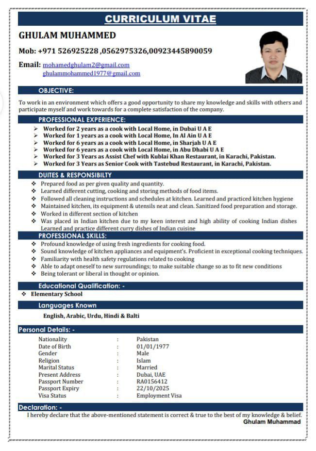 Seeking Work in Tourist and Restaurants in Emirates