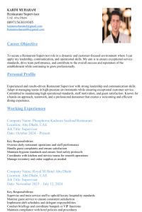 Am seeking a job opportunity in Abu Dhabi as a Restaurant Manager or Assistant Restaurant Manager. I have over 17 years of experience in the hospitality and restaurant industry, with comprehensive expertise in managing operations, leading teams, and handling customers while effectively resolving any issues