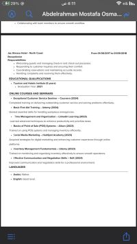 شاب مصري العمر 24 سنة، ابحث عن فرصة عمل في مجال السياحة والفنادق ولدي خبرة في السياحة وأيضا خبرة في مجال الكاشير ومجال السيلز أيضا مقيم في أبوظبي خريج معهد سياحة وفنادق