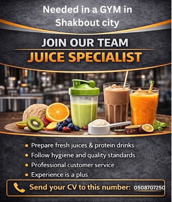 We are hiring at our gym in Shakhbout City. If you are interested in the position shown, please send your CV to the number below