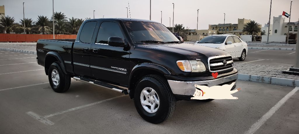 للبيع: تويوتا تندرا 2002، موديل ليمتد رقم واحد. المواصفات تشمل: مثبت سرعة، حساسات، رنقات معدنية، زجاج معتم. الداخلية جلد بيج، دفع رباعي 4x4، كراسي كهربائية، خالية من الحوادث. المحرك 8 سلندر، عليه إطارات شاهين 900، بطارية جديدة. الملكية سارية حتى 16 ديسمبر 2027. السعر: 17,000 درهم.