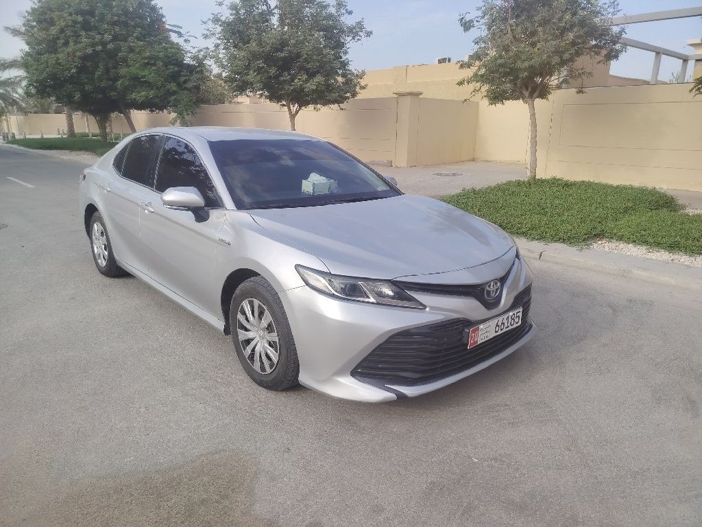 Toyota Camry Hybrid, 2019 model. Gulf specifications. Automatic transmission, 4-cylinder. Odometer: 737,000 km. Ownership and insurance transferable for one year. Clean interior and exterior, no issues. Previously used as a taxi.