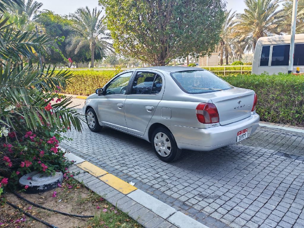 Toyota Echo 2002 GCC 4-cylinder in excellent condition, very clean inside and out, new ownership, new tires, AC works, mileage 263,000 for 8,500 AED.