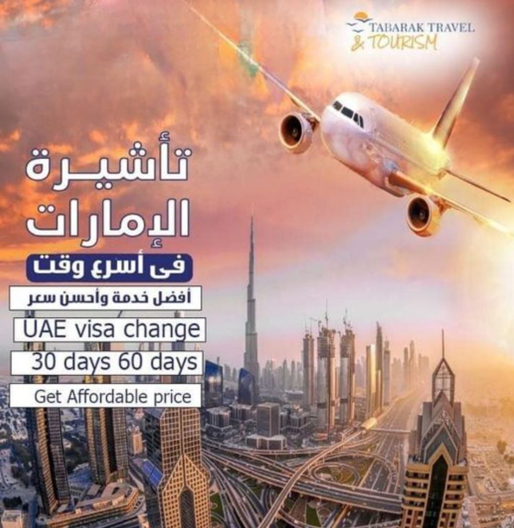 TABARAK TRAVEL AND TOURISM LLC - TICKETING - TOURIST Visa 30 DAYS - 60 DAYS - 90 DAYS From OUTSIDE AND Extension Inside THE Country - Visa CHANGE A2A BY Airport - UMRAH - JUST SEND YOUR SCANED PASSPORT AND CLEAR PHOTO ON WhatsApp DIRECTLY - Family Visa OFFER - KSA TOURIST Visa 90 DAYS FOR UAE RESIDENTS