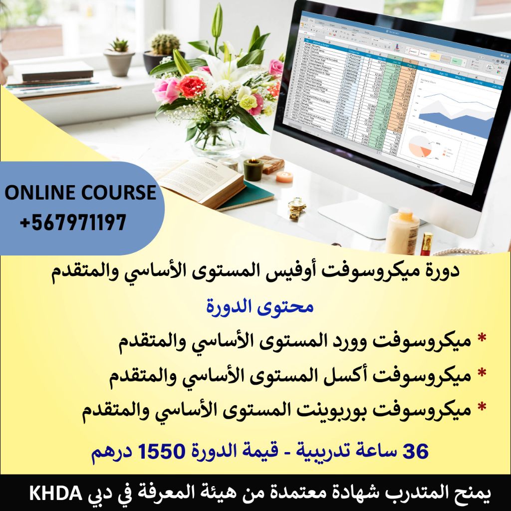 تفاصيل دورة مايكروسوفت أوفيس المستوى الأساسي والمتقدم الدورة تناسب المدرسين والمدرسات والباحثين عن التطوير في مجال العمل والباحثين عن التخصص في العمل الاداري مدة الدورة للمستويين معا 36 ساعة دراسية قيمة الدورة 1550 درهم قابلة للدفع على جزئين يمنح المتدرب شهادة معتمدة من هيئة المعرفة في دبي الدورة تقدم عن بعد ومواعيد مرنة