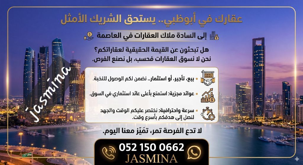مطلوب من السادة الملاك بمدينة أبوظبي عقارات للإيجار والبيع والاستثمار تميزوا بتحقيق أعلى عائد واغتنموا الفرصة بأعلى قيمة وبأسرع وقت
