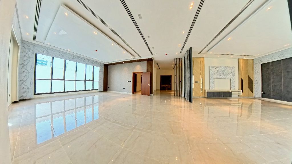 Villa Features Luxury Bright Living Hall With TV Lounge. Separate Dining Room With Brightness. Bright Six Master Bedrooms With Wardrobes. Nice Bright Two Kitchen's With Nice Cabinets. Stylish Nine Bathrooms With Bathtub. Separate Maid Room, Driver Room, Laundry Room. Central Air Conditioned (Paid By The Tenant) New Neat and Clean Ceramic. Inside & car parking Area. 24 Hours Free