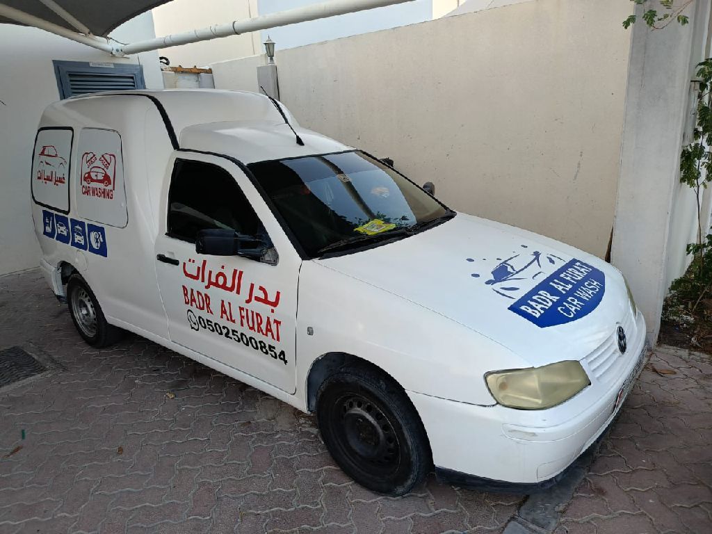 Mobile car wash vehicle for sale, suitable for travel. Comes with 3 months of full insurance. Equipment includes a tank, generator, hose reel, and vacuum cleaner in brand new condition. Four new tires purchased last week (1/2026). Tires are 2025 edition, brand new. Comes with vehicle warranty from a car wash company and is ready to work immediately. Asking price: 11,000. Location: Al-Falah Al-Jadida.