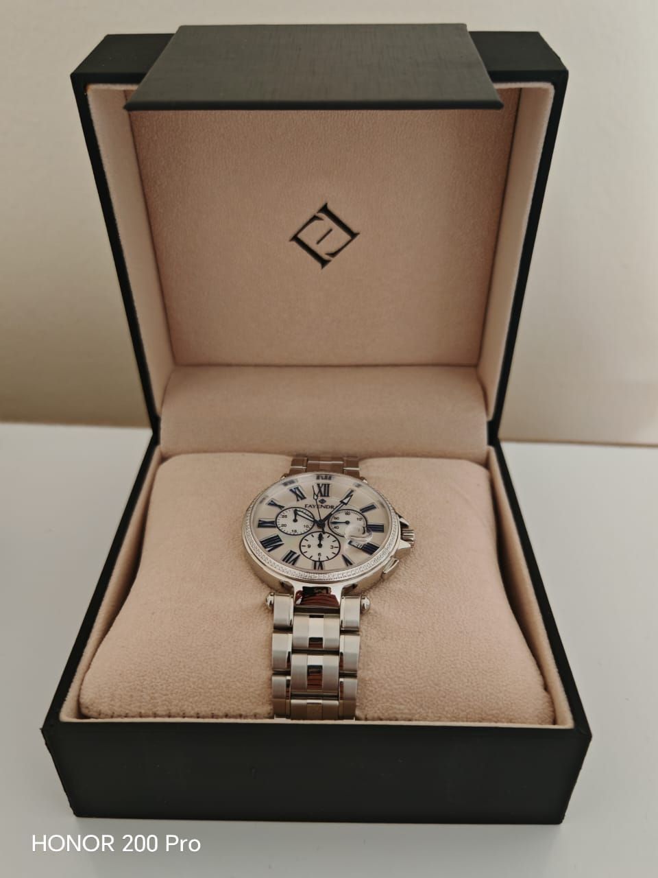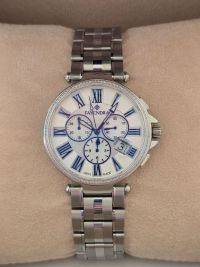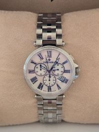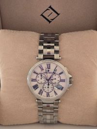 Fayendra Men Watch (New) Stainless Steel Stainless Steel 316L Swiss - Made Watches with mother - of - Pearl Dials, Zircon Gems, Sapphire Crystals, and Swiss Made Swiss - Made Watches with Mother - of - Pearl dials, Zircon Gems, Sapphire Crystals, and Swiss Made Style Classic/ neo - vintage look with Roman numerals (blue accents) Swiss Made at the bottom. Case & bracelet Silver - tone metal bracelet