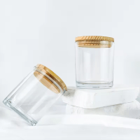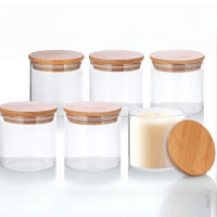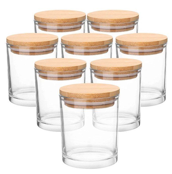 Glass Jars with Bamboo Lids for Making Candles, Empty Candle Tins with Wooden Lids, Bulk Clean Containers - Dishwasher Safe