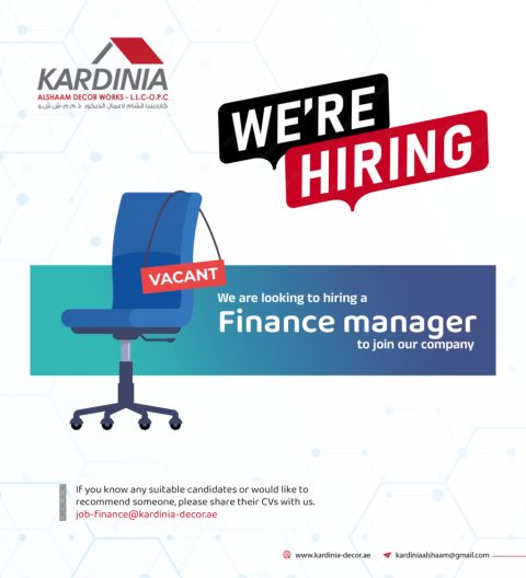 Job Vacancy - Finance Manager Kardinia Alshaam Decor Work a leading company specializing in gypsum ceilings and interior décor works is seeking an experienced and dedicated Finance Manager to join our team in Khaldiya - Abu Dhabi Position Finance Manager Location Khaldiya - Abu Dhabi Company Kardinia Alshaam Decor Work Salary To be determined