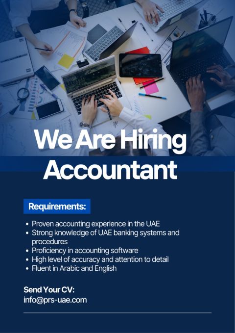 مطلوب محاسب أو محاسبة للعمل في مكتب استشارات ضريبية ومحاسبية في عجمان منطقة النخيل