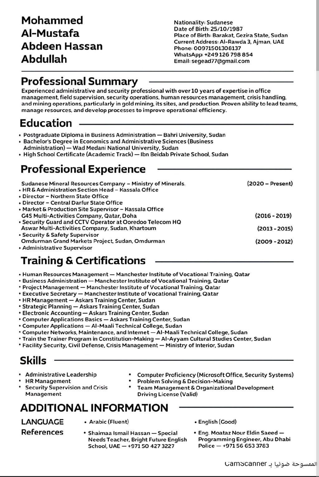 خبير بمجال العقارات والتوظيف والادارة والموارد البشرية والحسابات، العمر 38 سنة، لدي اقامة حره في الامارات وخطاب اعارة واستطع العمل بها، ولدي رخصة قيادة ولدي سيارة خاصة، أنا خريج بكالوريوس الاقتصاد والعلوم الادارية وتخصصت ادارة أعمال، ولدي دراسات عليا في ادارة الأعمال، ولدي خبرة أكثر من 10 أعوام داخل وخاررج الدولة