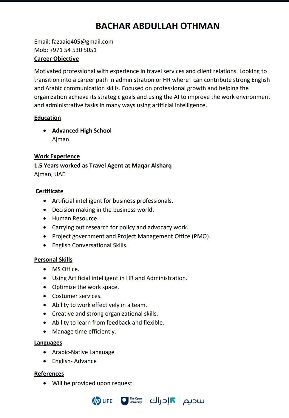 ابحث عن عمل يتناسب مع خبراتي ومهاراتي والشهادات الذي أملكها في عجمان