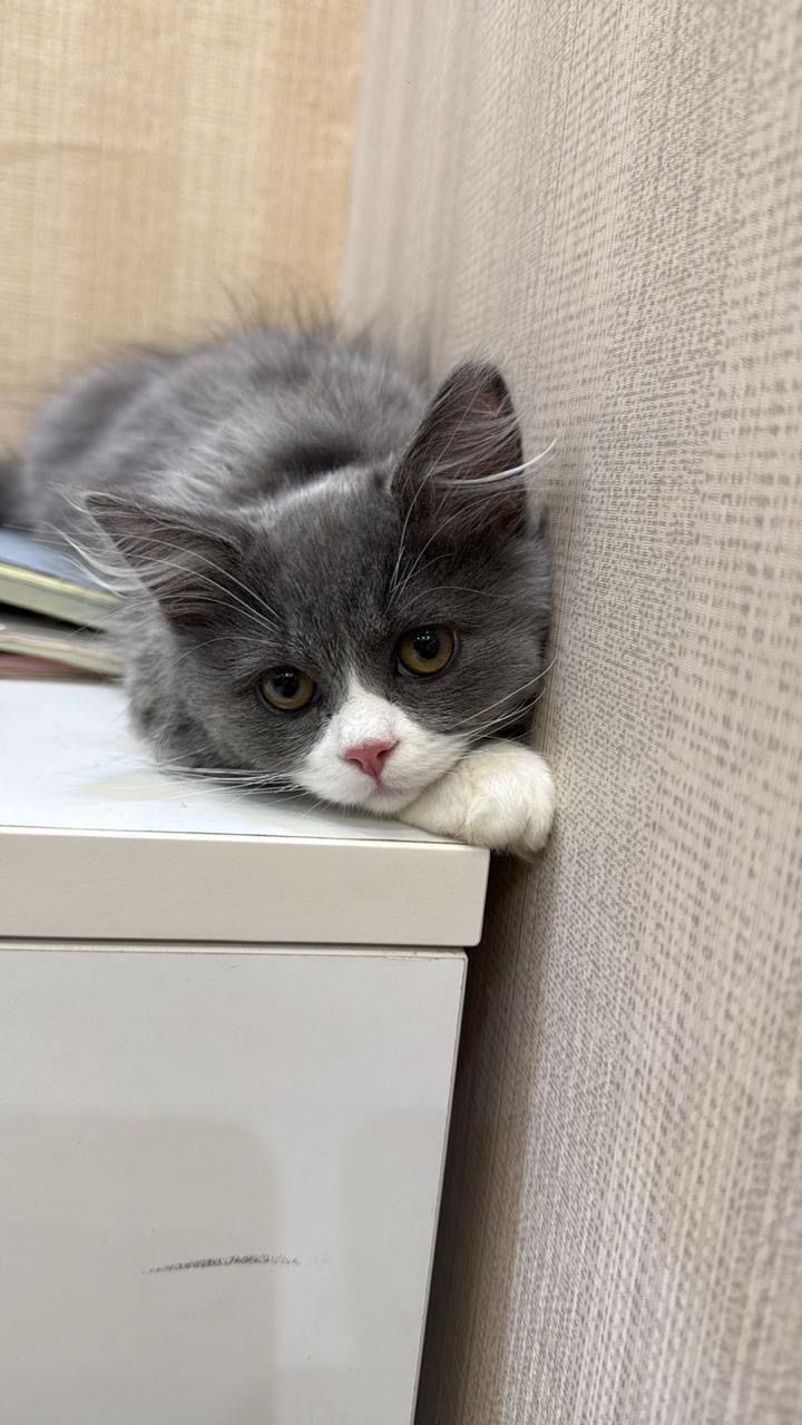 قطو ذكر اللون النادر الرمادي لعوب جدا. العمر 5 شهور مع كامل ملحقاته ودفتر الطعوم للبيع لدواعي السفر مكان التواجد عجمان