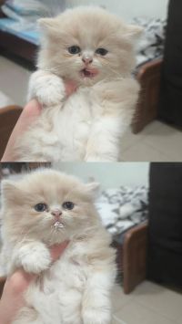 قطة شيرازي عمرها 4 شهور اخذت كل اللقاحات ومتعلمة على لتر بوكس مع شامبو استحمام لها ولتر بوكس ومقص اظافر بسعر رمزي جدا 200 درهم