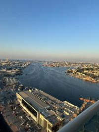 3 bedrooms and a living room with 4 bathrooms 2 Balconies The 3 master bedrooms with built - in wardrobes Apartment area 181 meters 1948 square feet The entire apartment has a view of the creek. Oasis Towers High floor, over 15 Price 1100000 dirhams
